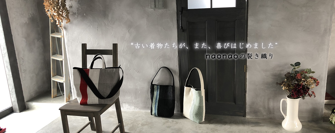 古い着物から再生されるnaonaoの裂き織り作品を通して、素晴らしい日本の伝統着物にも想いを馳せていただけたら幸いです。