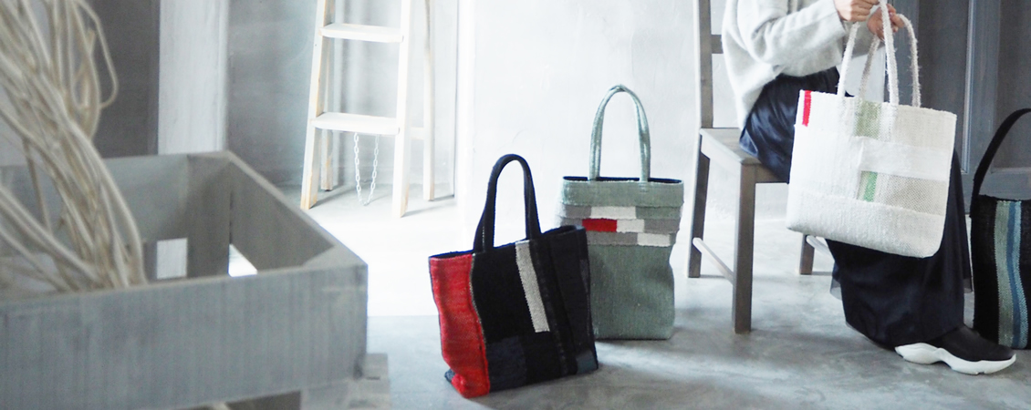 「裂き織り」は、使い古した布を細く裂き、織りこみ、再生する織物のことです。