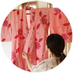 着物の柄が、織り機の上で、新たな思いがけない模様となり、心が踊る瞬間です。