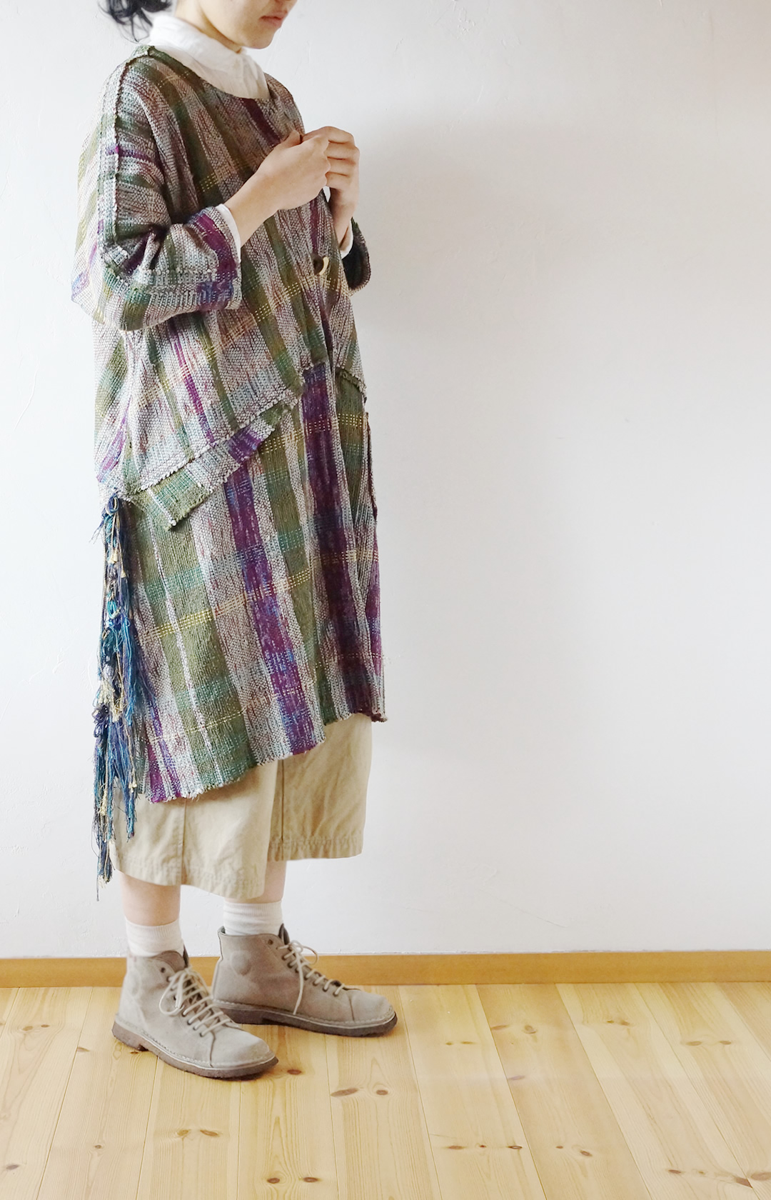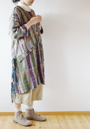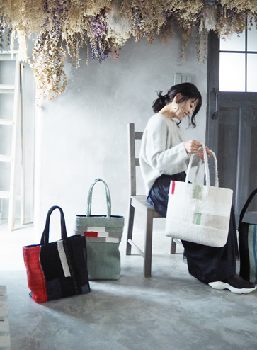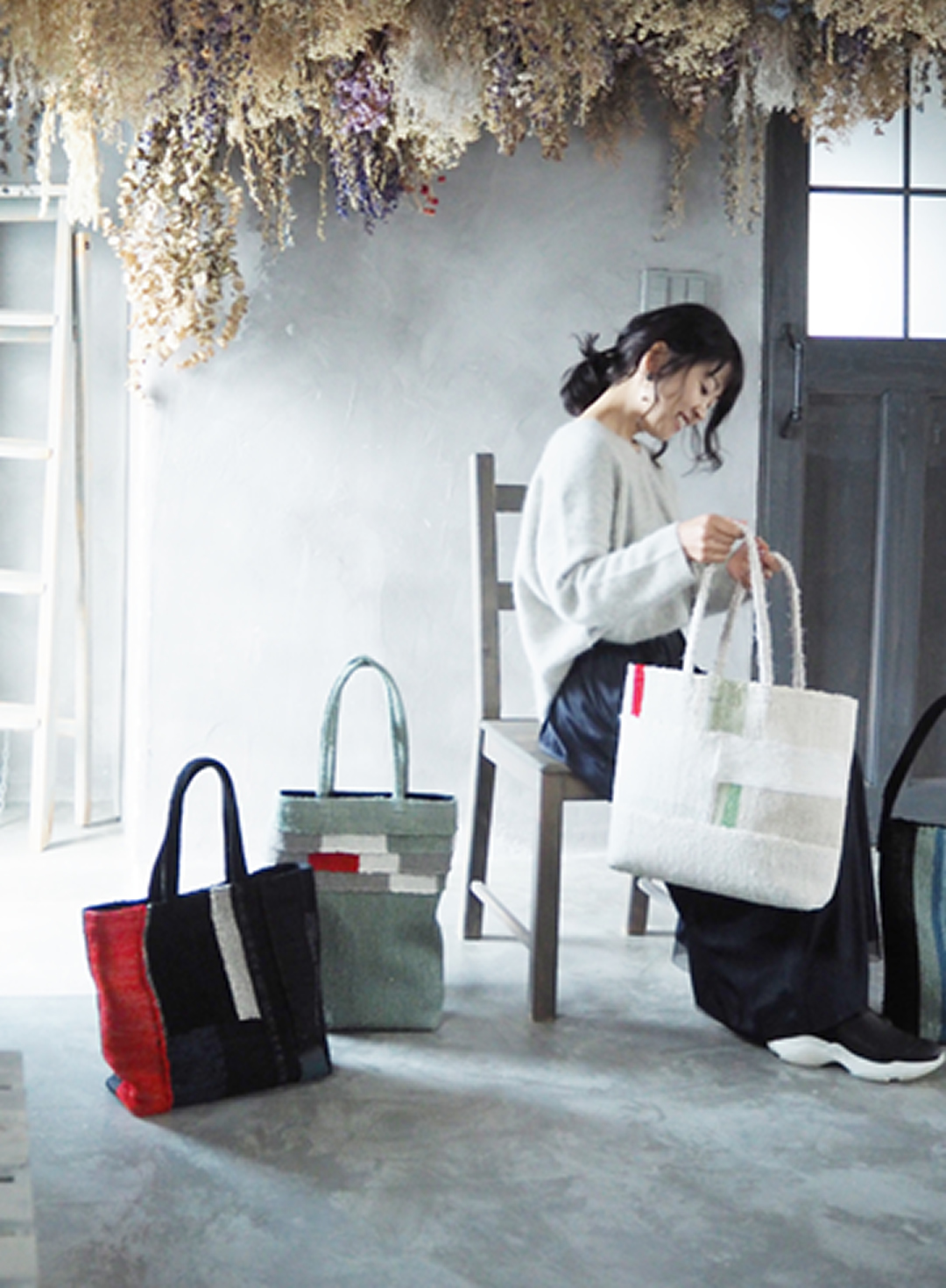 naonaoの裂き織りは、 一点一点、作品イメージに合った着物を選び、ほどき、裂き、織り、仕立てる。手間ひま掛けた工程を経て、ひとつひとつ丁寧に作られていきます。その美しい唯一無二の柄を活かしたデザインで仕立て上げる、naonaoの手仕事の魅力を少しでも感じていただけたら幸いです。